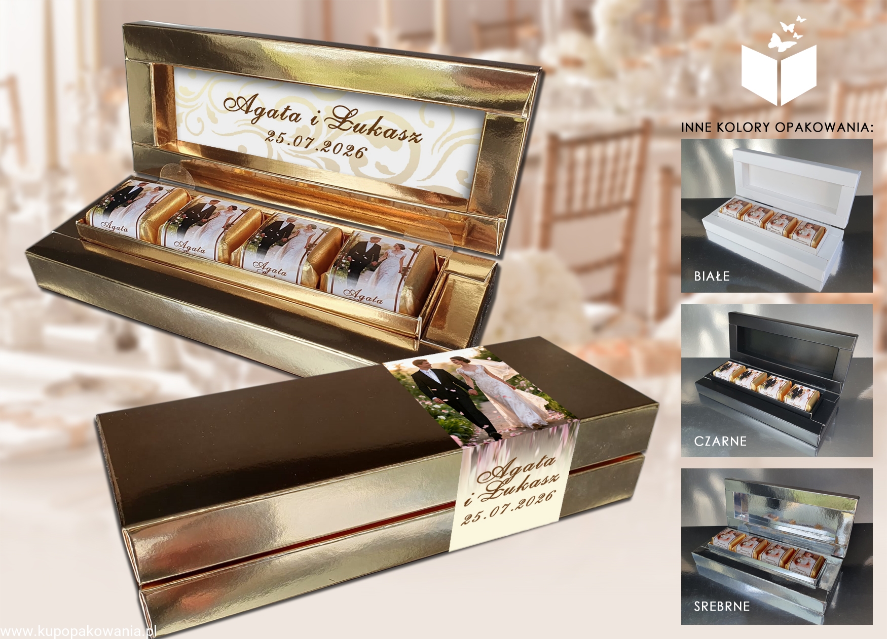 Mini bombonierka AMARO z 4 czekoladkami na Ślub, Komunię, Chrzest i inne okazje - zestaw 10 kpl.
